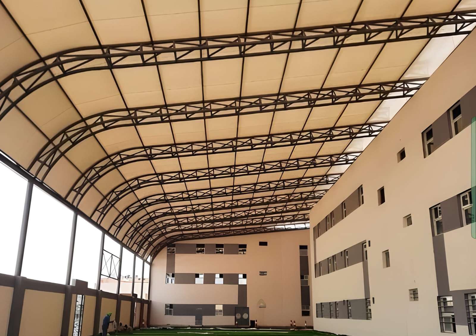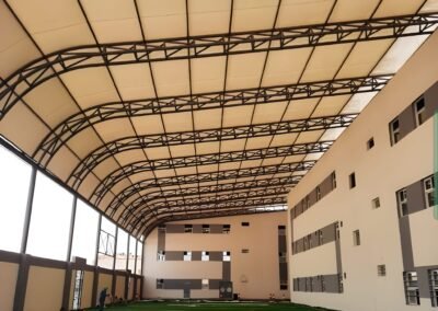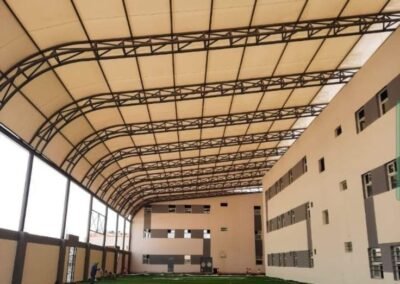 للمشاريع المعمارية الضخمة التي تتحدى المألوف، تقدم مظلات وسواتر الرياض حلول الشد الإنشائي المبتكرة. عبر الهندسة الدقيقة وأغشية PVDF عالية المرونة، نصنع تغطيات انسيابية تحول المساحات الواسعة كالملاعب والمراكز التجارية إلى معالم بصرية بارزة تتسم بالخفة والمتانة.
