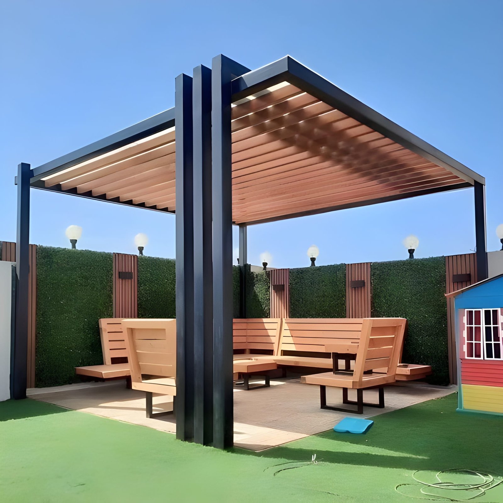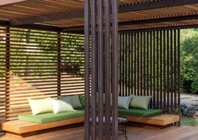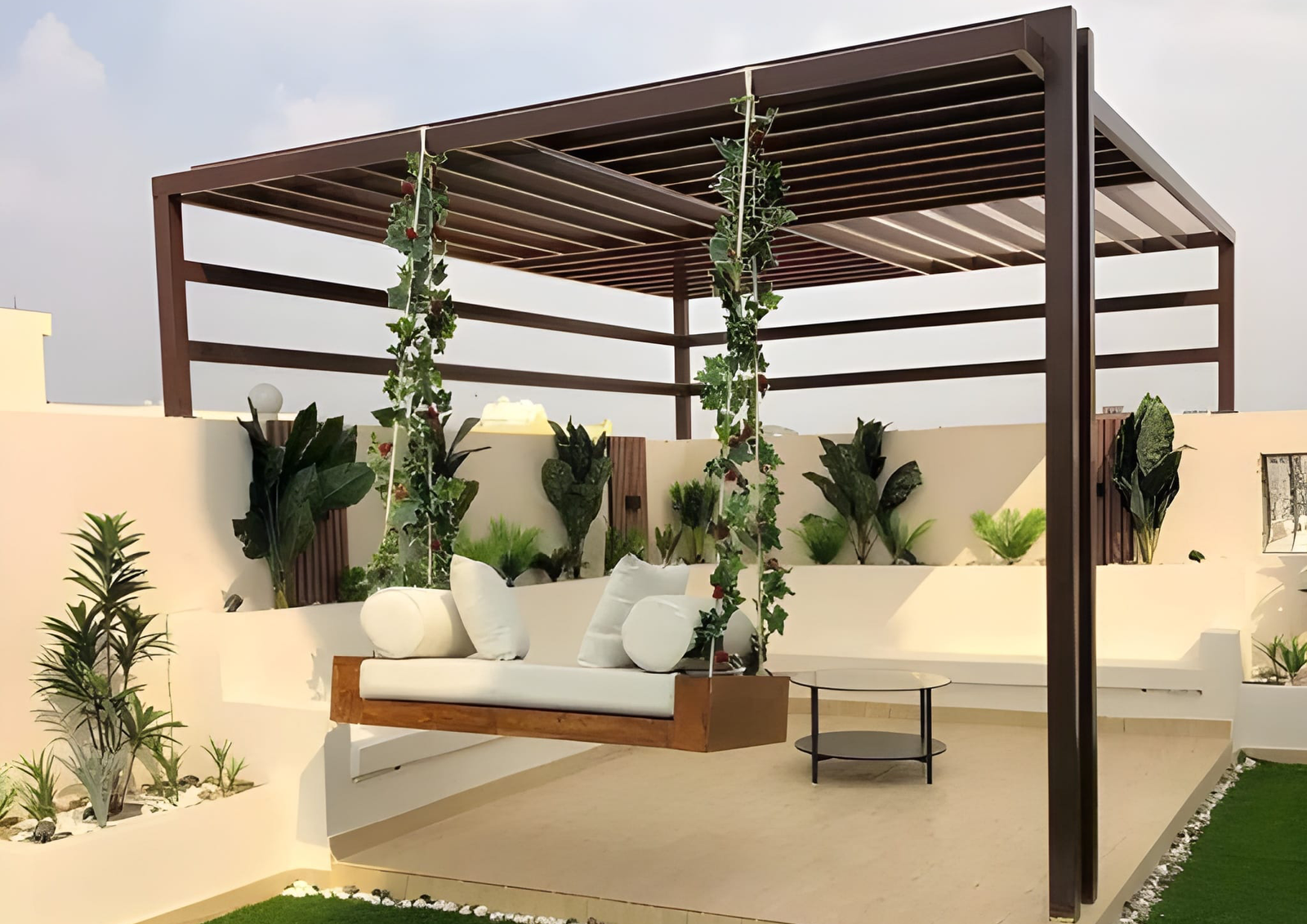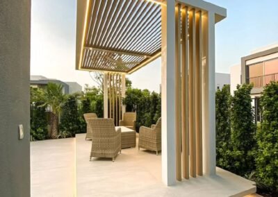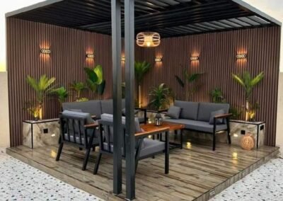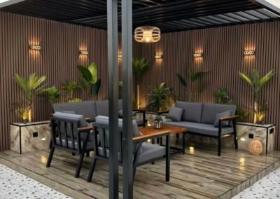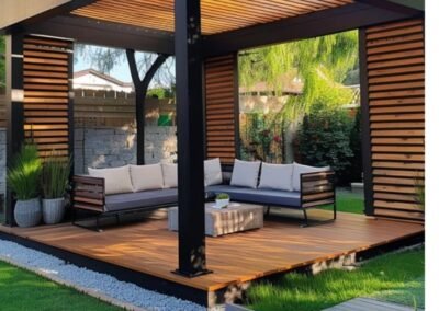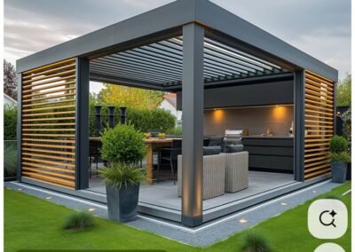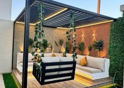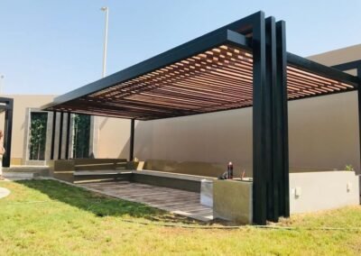 حوّل مساحتك الخارجية إلى منتجع خاص بك. تبدع مظلات وسواتر الرياض في تصميم وتنفيذ برجولات عصرية من الحديد والخشب المعالج، والتي تشكل إضافة معمارية ساحرة للحدائق والأسطح، لتكون مساحتك المثالية للاسترخاء والترفيه في الهواء الطلق.