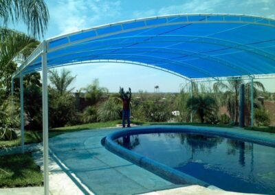لتستمتع بمسبحك طوال العام وبكل خصوصية وأمان، تقدم مظلات وسواتر الرياض تغطيات مبتكرة من مادة اللكسان (البولي كربونيت) الشفافة والملونة. هذه التغطيات لا تحمي فقط من أشعة الشمس الضارة والحشرات، بل توفر بيئة آمنة تماماً لأطفالك بفضل متانتها ضد الكسر.