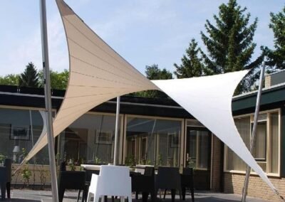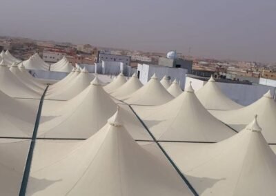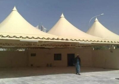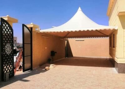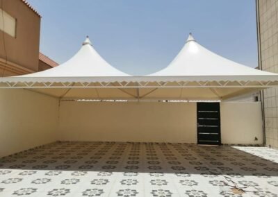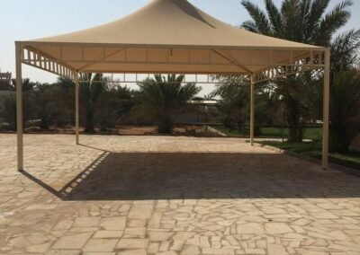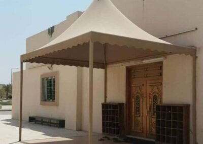 تعتبر المظلات الهرمية رمزاً كلاسيكياً للفخامة والهيبة. في مظلات وسواتر الرياض، نقوم بتصنيعها بهياكل معدنية متينة وتغطيات فاخرة، مصممة بدقة لتتوج مداخل القصور والفلل والمساجد، وتضفي عليها طابعاً فريداً من الأناقة الهندسية التي لا تخطئها عين.