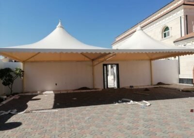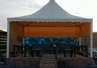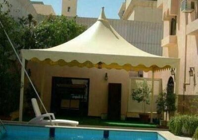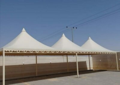 نحيي التراث العربي الأصيل بلمسة من الفخامة العصرية. تتخصص مظلات وسواتر الرياض في بناء بيوت شعر ملكية بهياكل معدنية قوية وعوازل متكاملة، مع ديكورات داخلية فخمة من أفضل أنواع الأقمشة (السدو) والإضاءة المخفية، لتكون مجلسك الذي تفخر به.