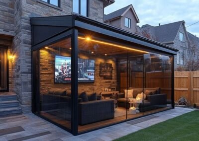 لا تدع برودة الطقس أو الأمطار تمنعك من الاستمتاع بإطلالة حديقتك الساحرة. تصمم مظلات وسواتر الرياض غرفاً زجاجية معزولة بالكامل (جلسات شتوية) باستخدام هياكل ألومنيوم متينة وزجاج سيكوريت مزدوج، لتمنحك مساحة دافئة وحميمة مع إطلالة بانورامية لا مثيل لها، معزولة تماماً عن البرودة والضوضاء والأتربة. تعتبر هذه الجلسات إضافة مثالية للمنزل، حيث توفر مساحة معيشة إضافية يمكنك استخدامها على مدار العام. استمتع بجمال الطبيعة من حولك وأنت في راحة تامة. لمزيد من المعلومات، اتصل بنا على 0551715135.